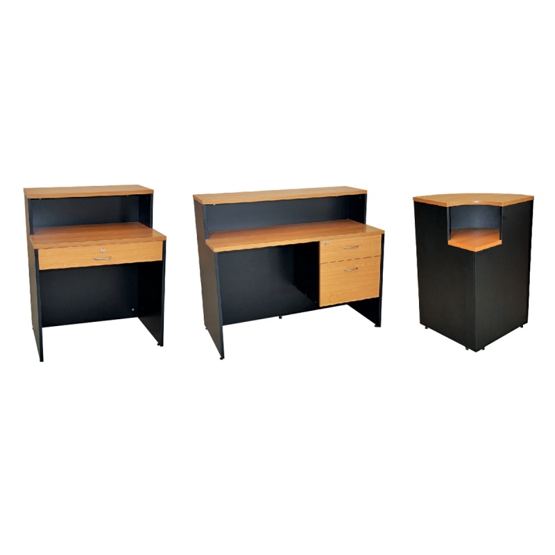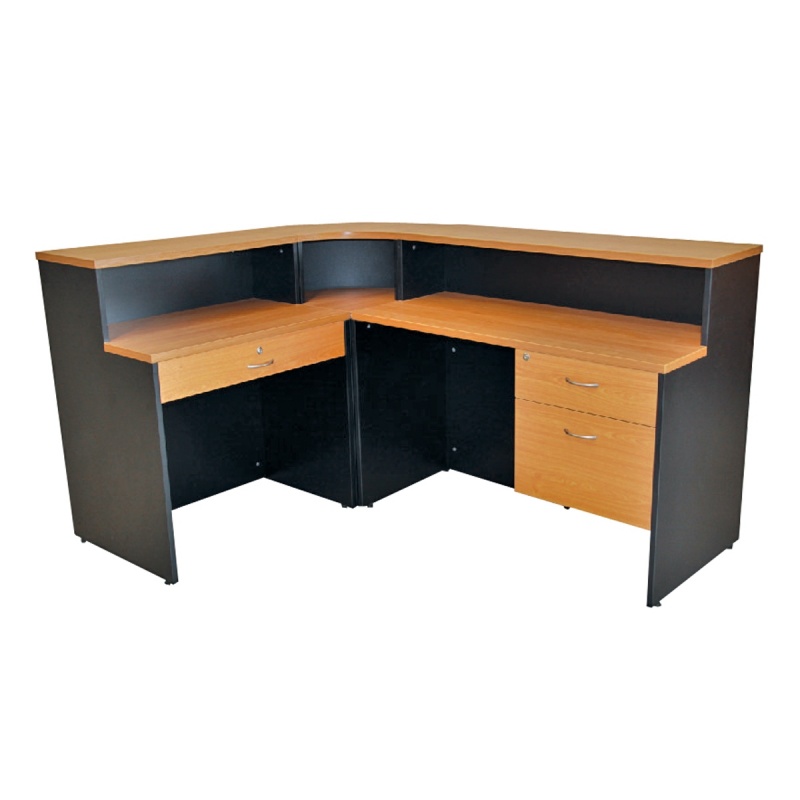 L-shaped wooden counter table Consists of 3-drawer straight counter table, 1-drawer center counter table, and corner counter table lattice
