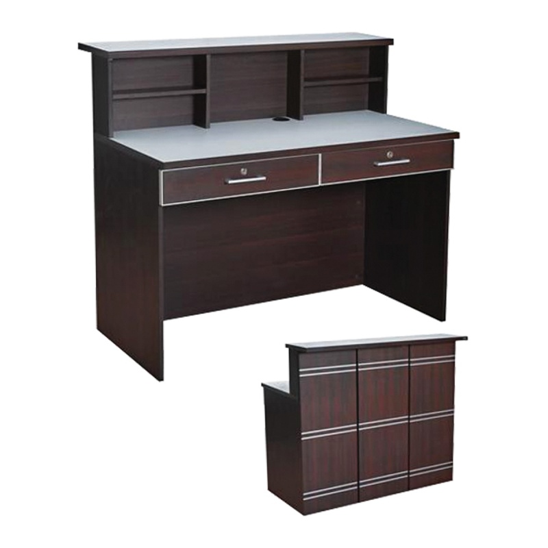 Prefabricated wooden counter table, straight type, with 2 middle drawers