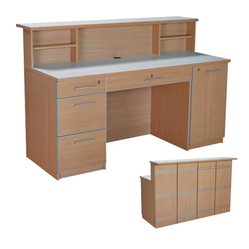 Prefabricated wooden counter table, straight type, with 1 center drawer and 3 drawers on both sides