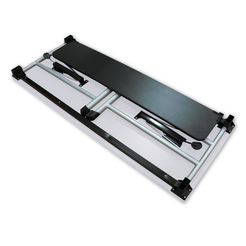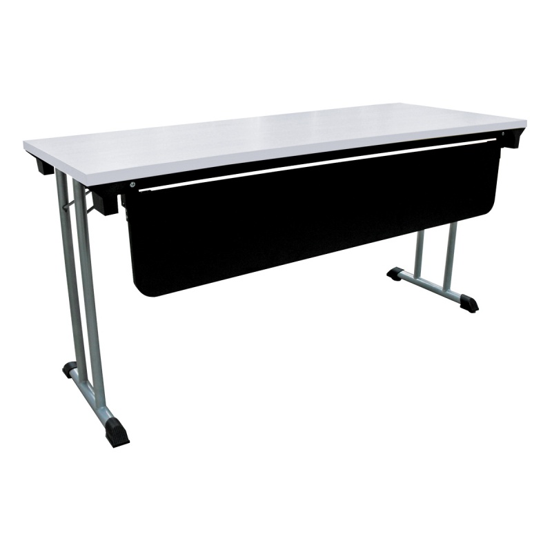 Multipurpose foldable table with front screen, melamine-coated wooden tabletop, painted steel frame, suitable for classrooms,