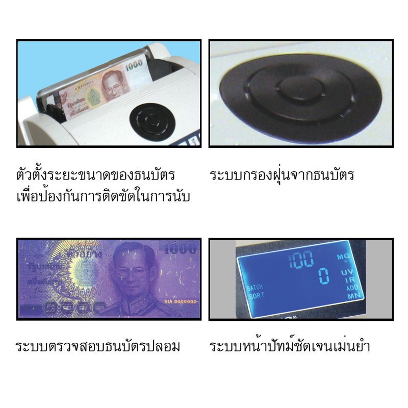 • Count Thai banknotes specifically with UV, MG, guaranteed to detect counterfeit banknotes accurately