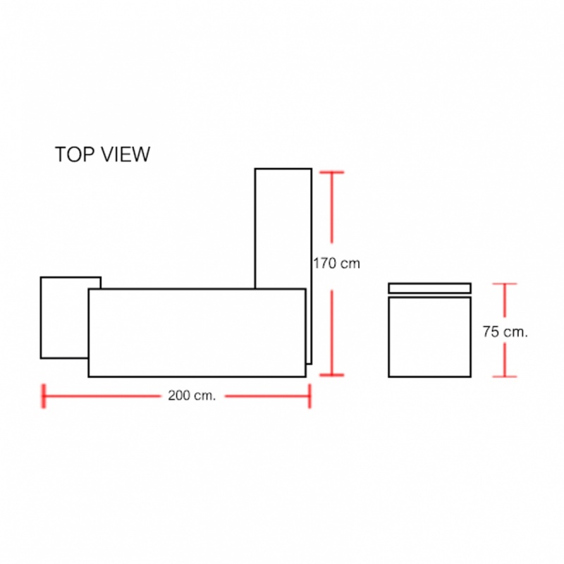 External dimensions (Width*Length*Height) 200*170*75 cm.