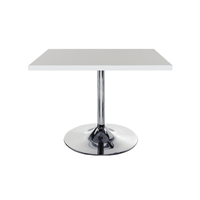 Square multipurpose table with round base, A-grade particle board tabletop, melamine-coated