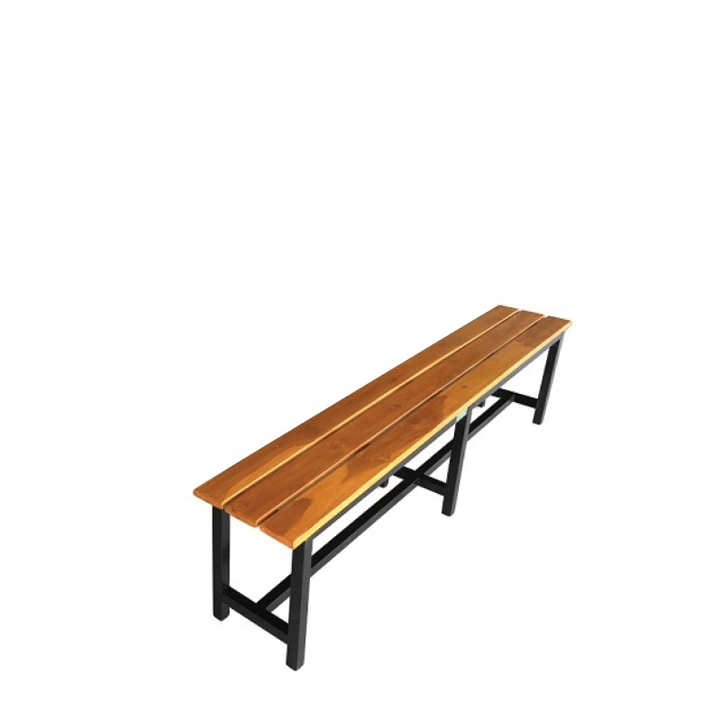 Multipurpose bench, rubber wood (slatted surface), fixed legs, black painted steel frame