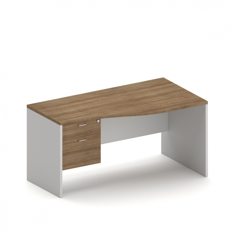 Work desk featuring a right-curved front edge and 2 left-side drawers. Model SD2-PF-1202R