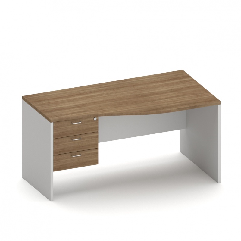 Work desk featuring a right-curved front edge and 3 left-side drawers. Model SD2-PF-1203R