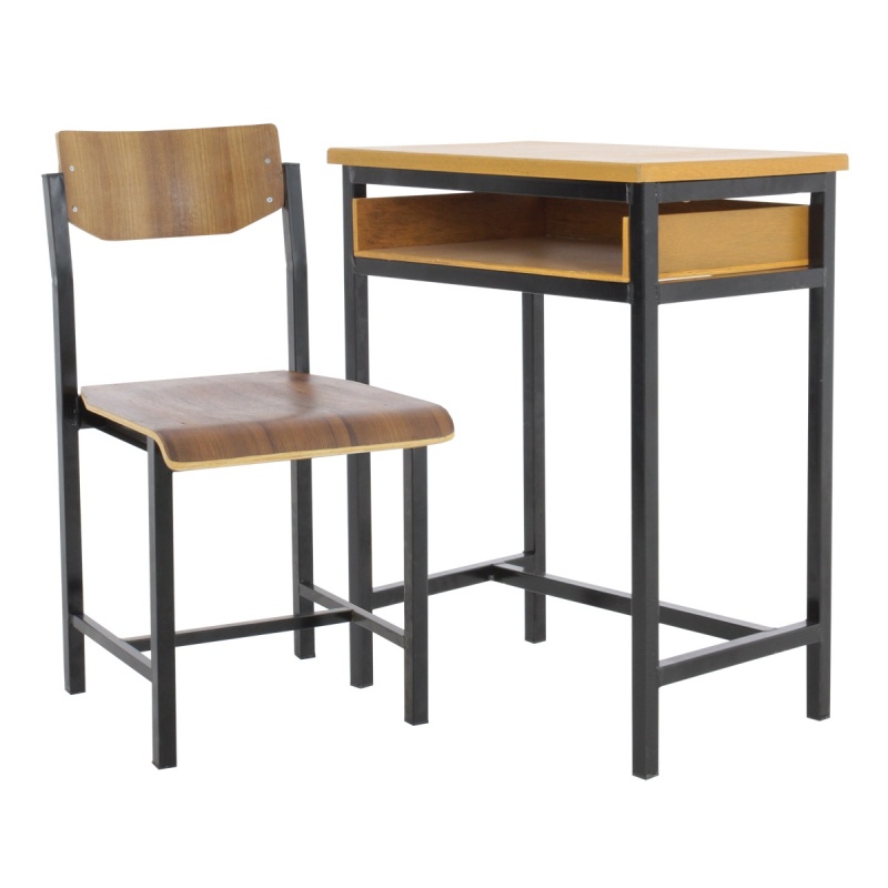 Standard student table and chair set, wooden equipment, steel legs, painted