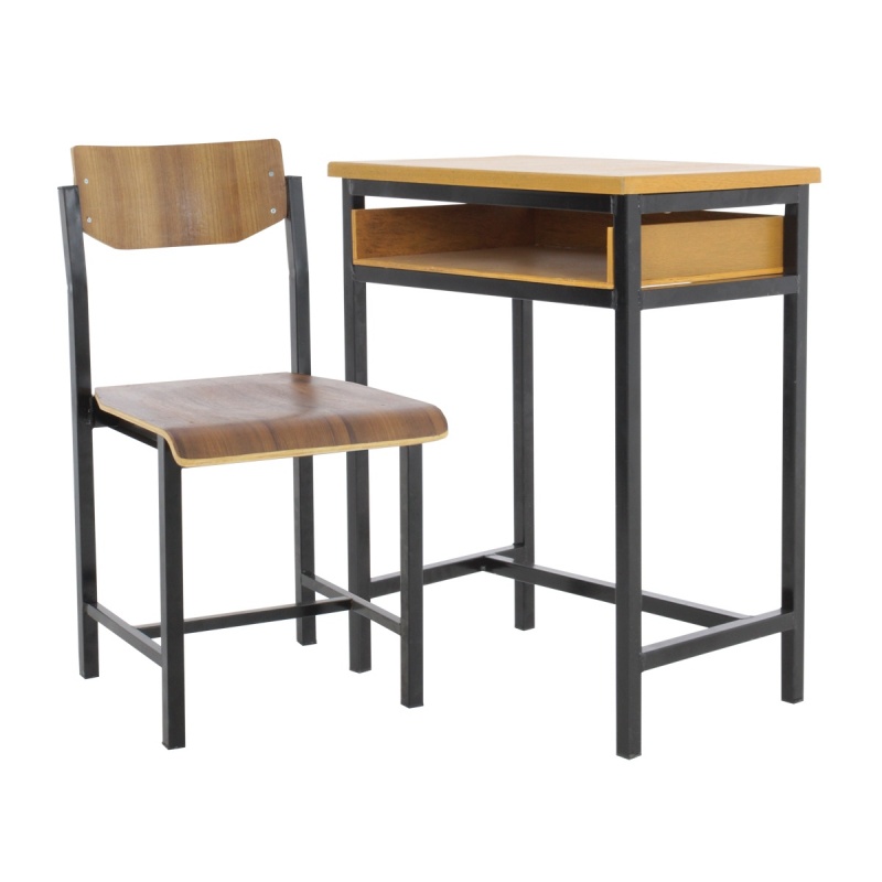 Standard student table and chair set, wooden equipment, steel frame, painted