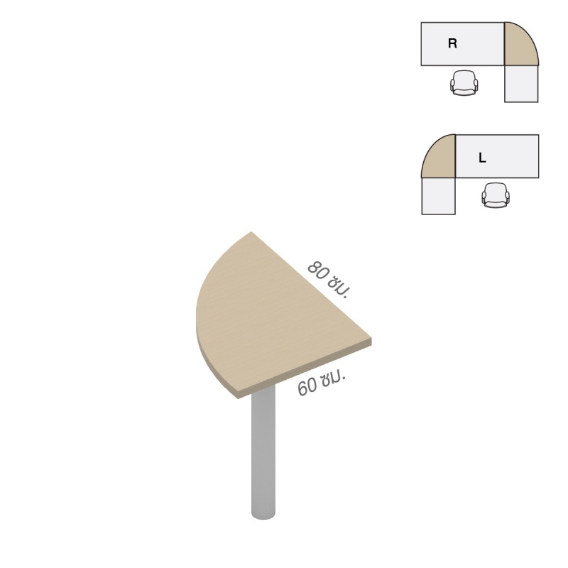 Corner extension leaf, steel legs 1/4 circle, left and right