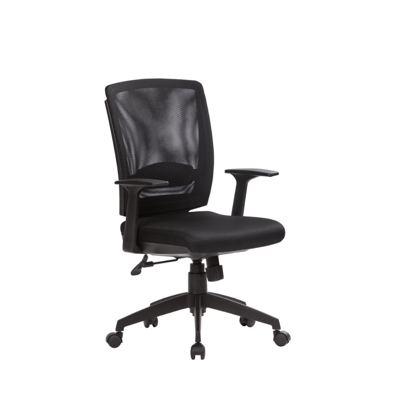 Backrest is high to the middle of the back. Height adjustment with hydraulic system