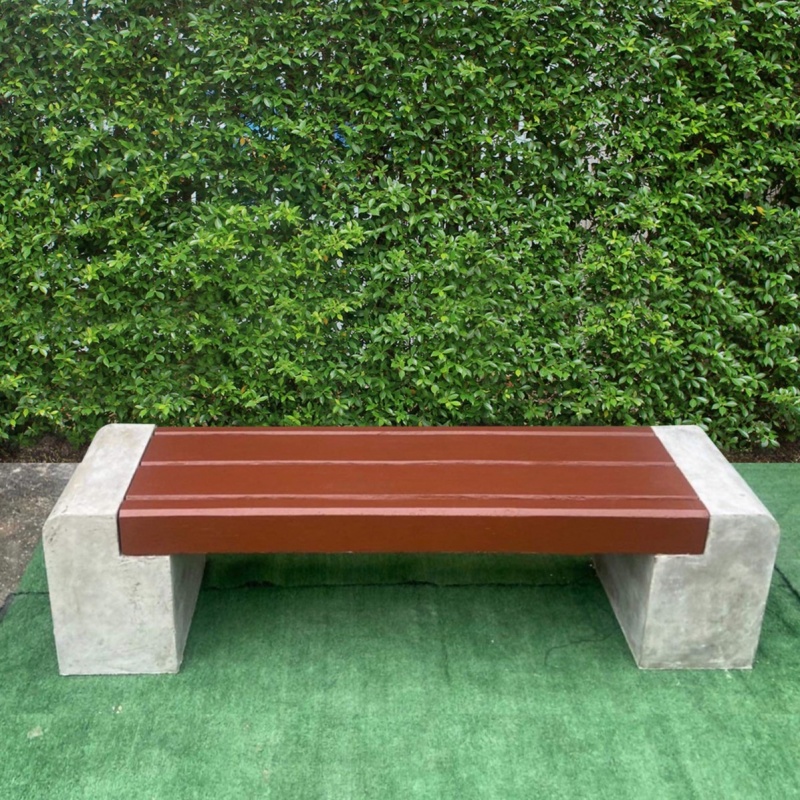 Cement bench with concrete block base, simple and elegant shape, no pattern, molded work