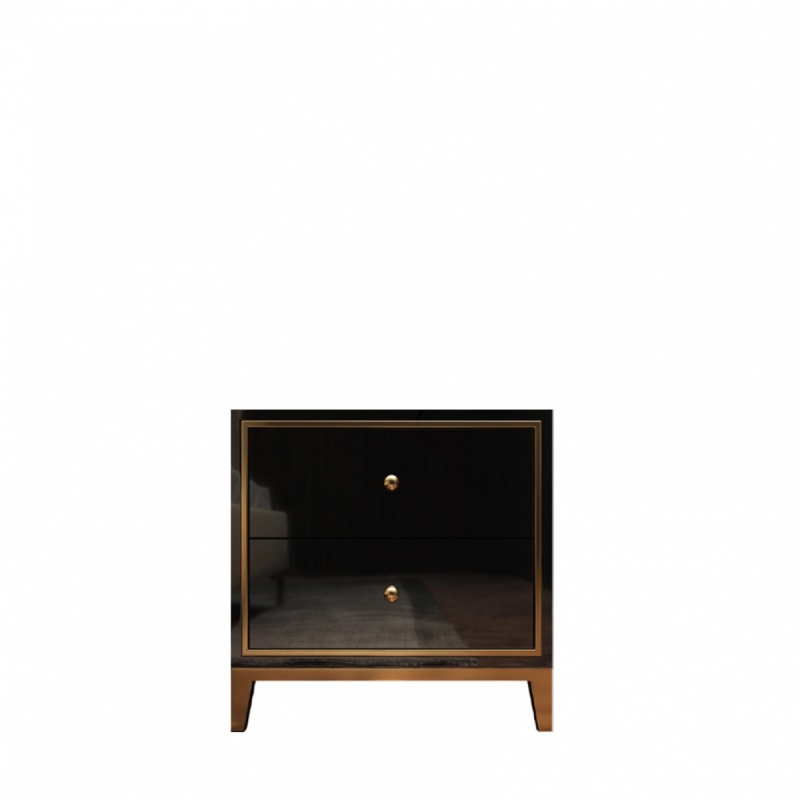 Bedside cabinet 2 drawers Luxury High-gloss wood, stainless steel legs