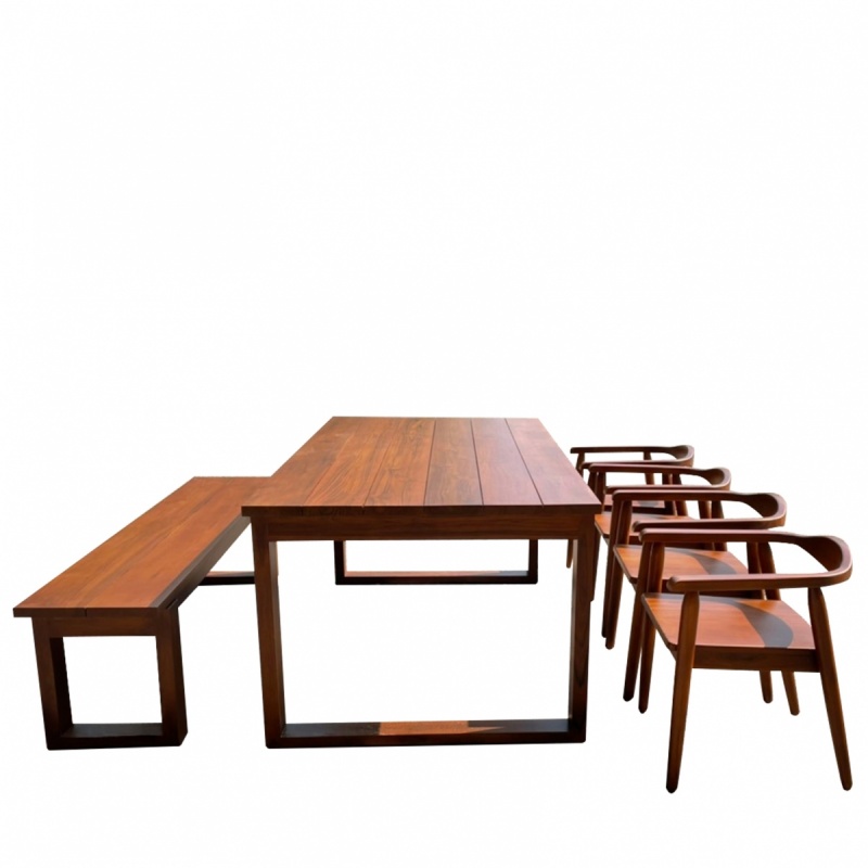Dining table set, separate top 1.5 m, long bench and 4 chairs, teak