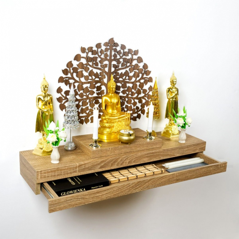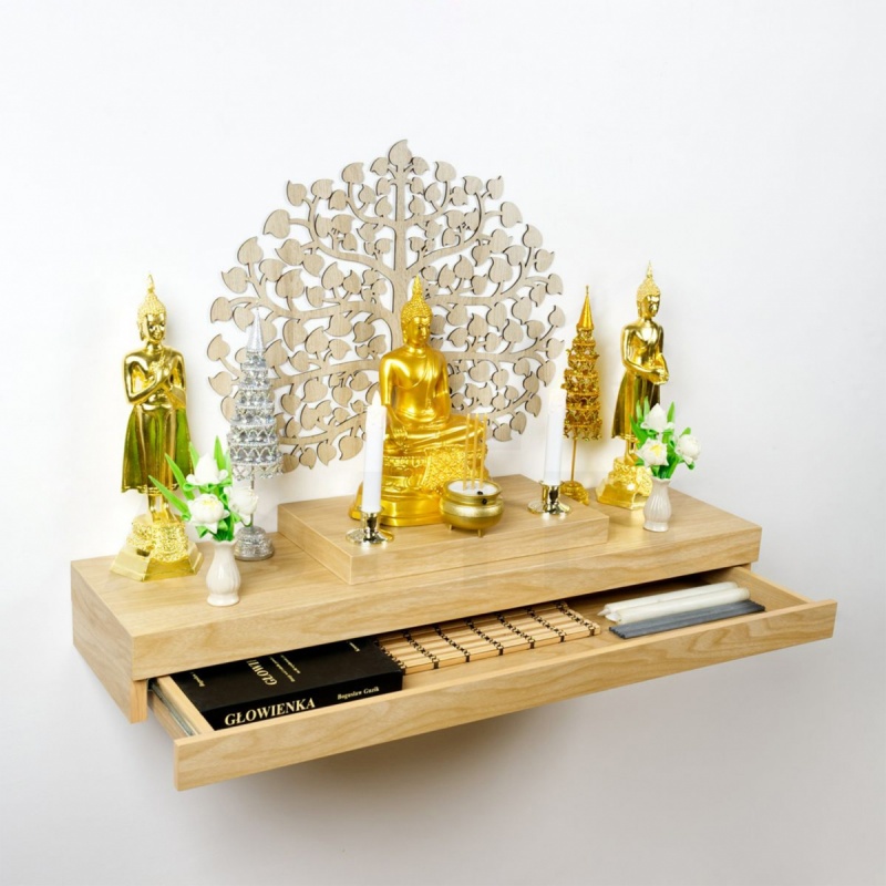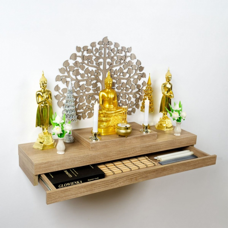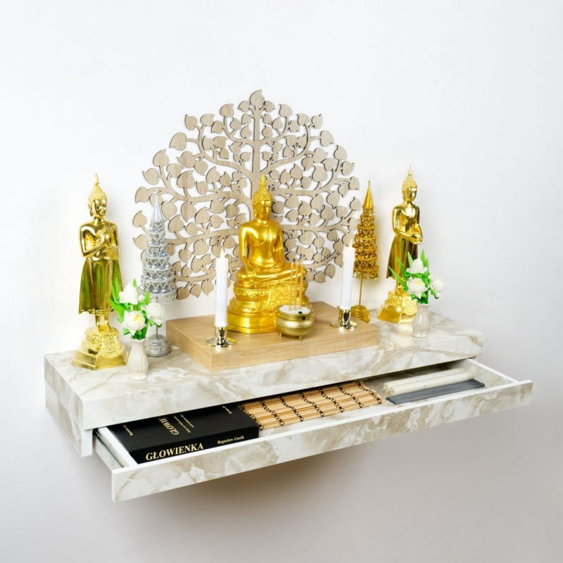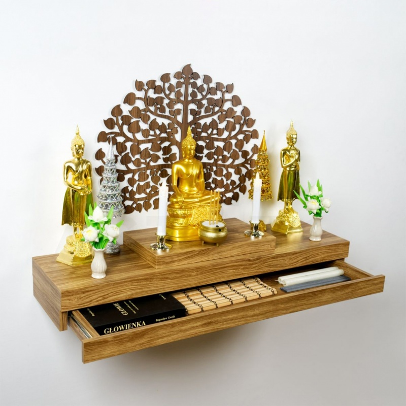 Wall-mounted Buddha shelf, 1 drawer, model altar-shelf-2490