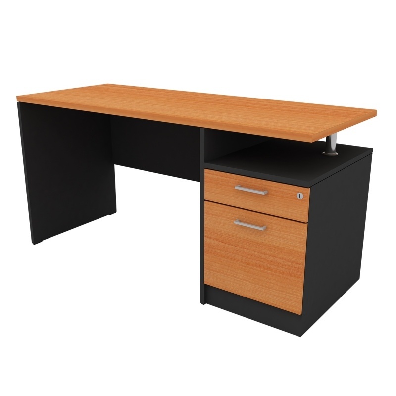 Wooden desk, new design, raised table top from the drawer body, has 2 drawers on the right side.