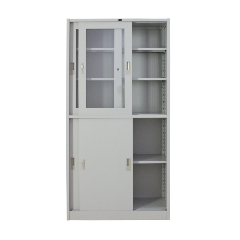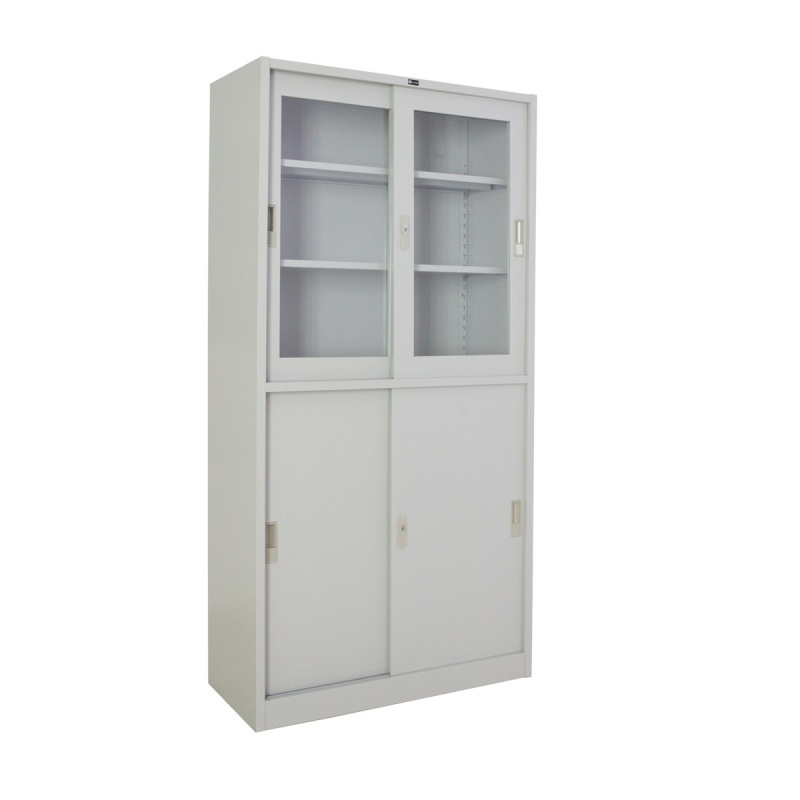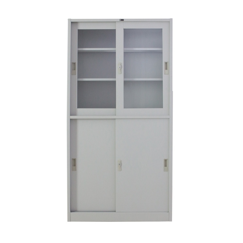 SPACE PRO Steel Multipurpose Cabinet, Glass Sliding Door on Top, Solid Sliding Door on Bottom