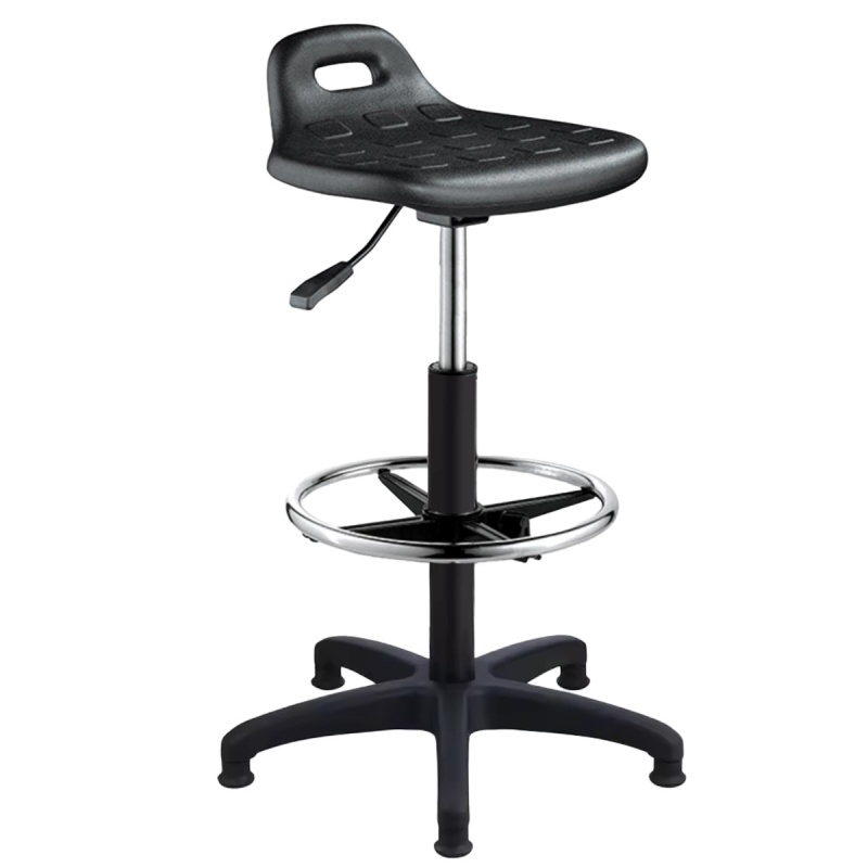 Height adjustment is operated by a chrome-plated hydraulic gas lift system.