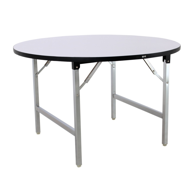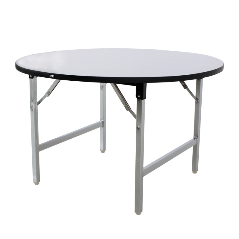โต๊ะอเนกประสงค์ทรงกลม ชนิดพับเก็บได้ หน้าโต๊ะปิดผิวโฟเมก้าสีขาว โครงขาเหล็กชุบโครเมี่ยม