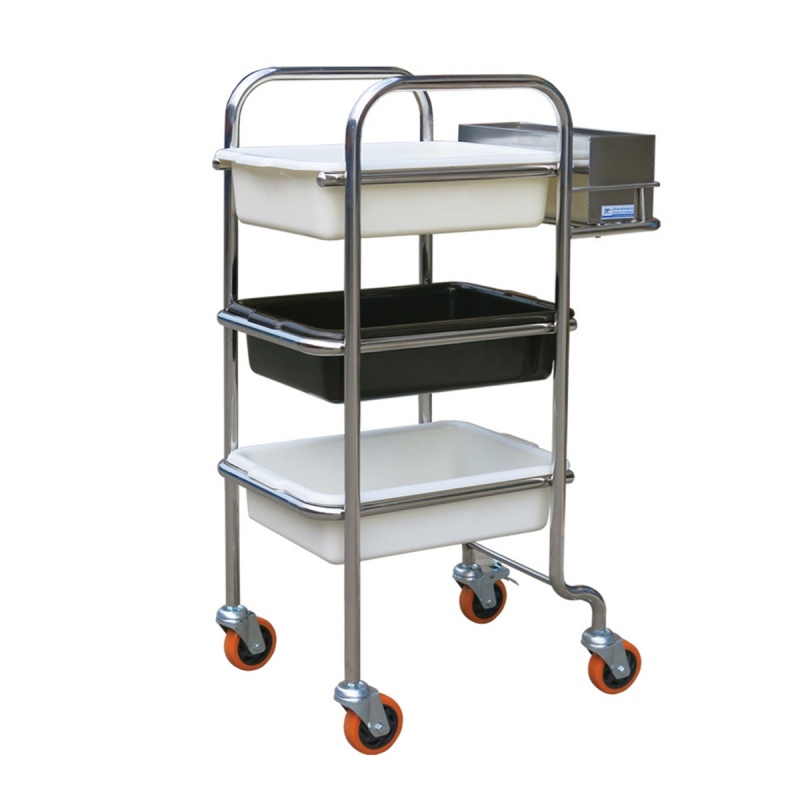 รถเข็นเก็บจาน 3 ชั้น เพิ่มกล่องเก็บอุปกรณ์ด้านข้าง