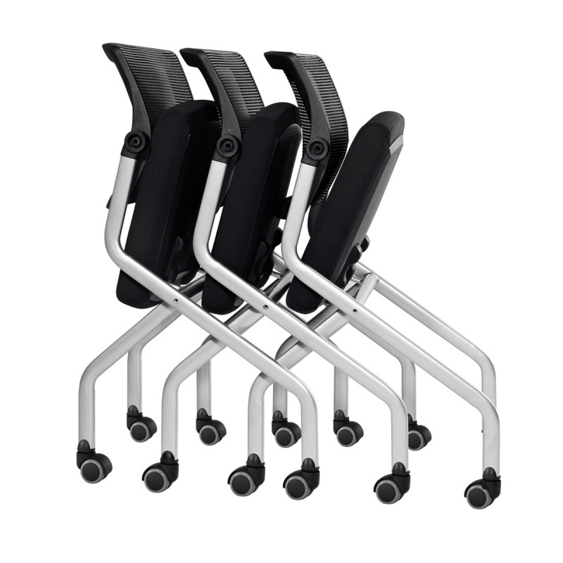 ไม่มีท้าวแขน มีล้อ โครงขาเหล็กสีเงิน พับซ้อนเก็บได้