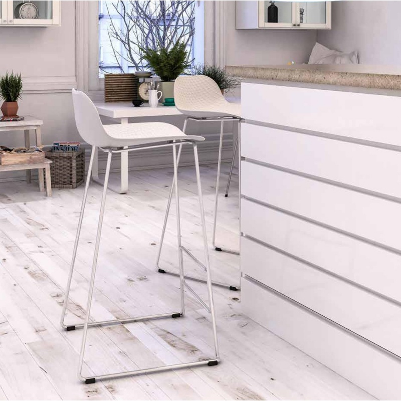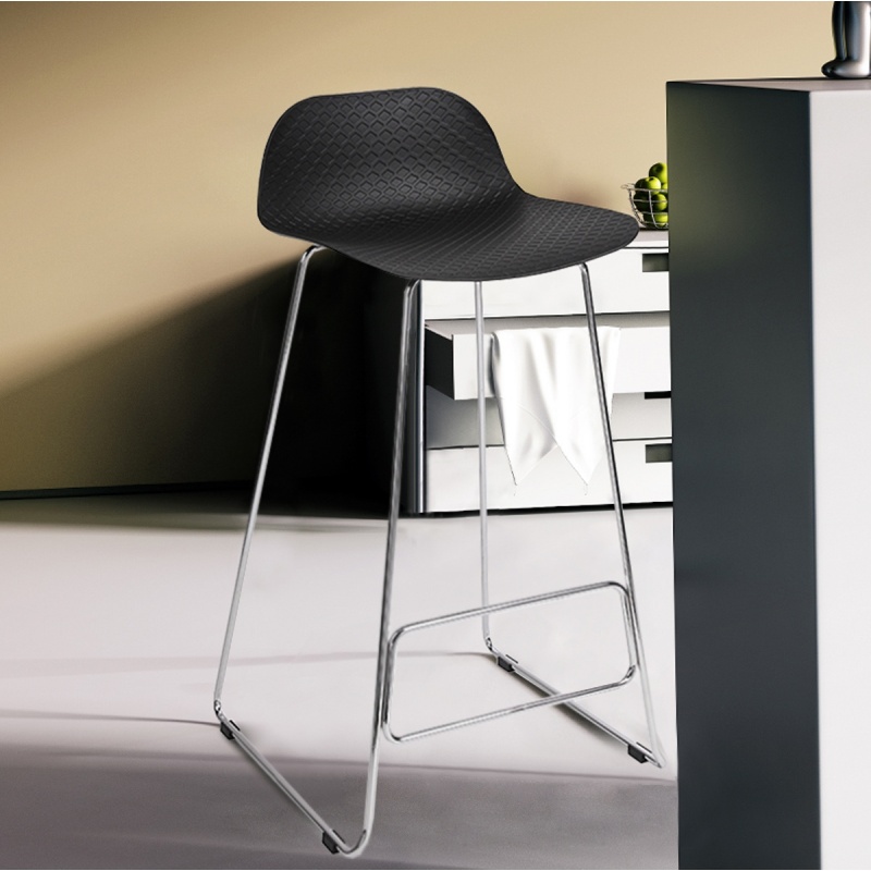 เก้าอี้บาร์ขาเหล็ก ที่นั่ง PP ขาโครม ดีไซน์ทันสมัย มีที่เหยียบพักเท้า