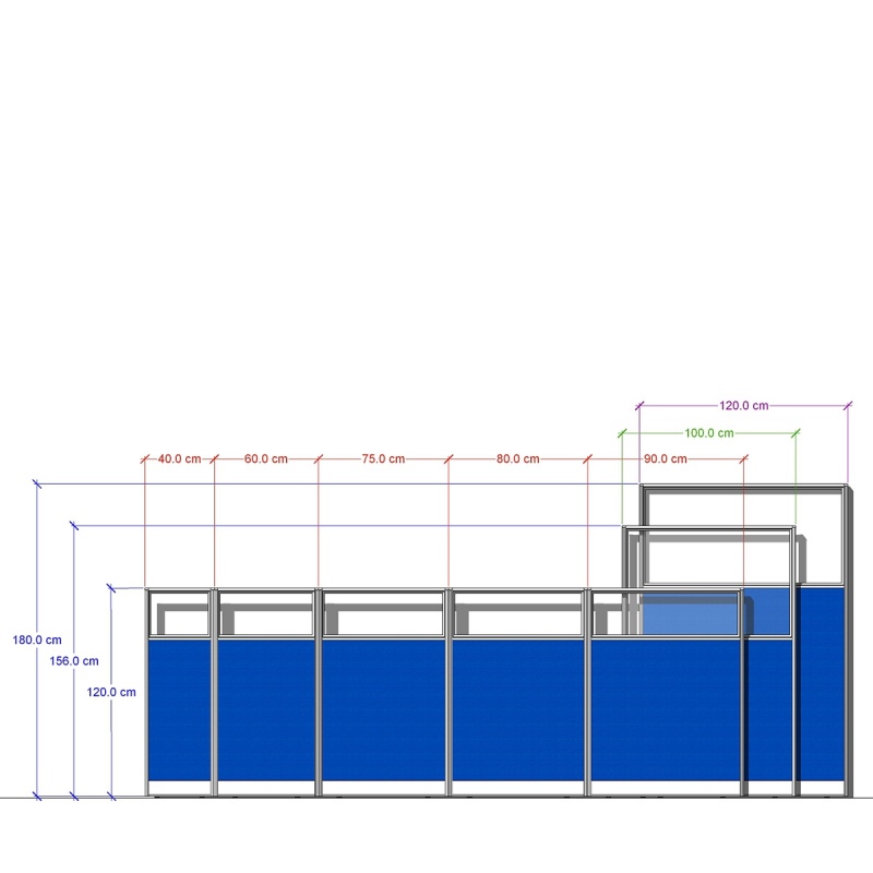 SEBEL Partition - ฉากกั้นห้องครึ่งกระจกใส มีกล่องร้อยสายไฟด้านล่าง สูง 180 ซม.