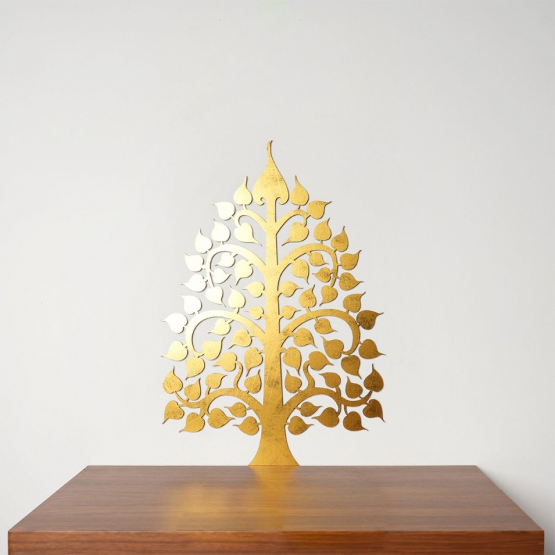 ใบโพธิ์ทรงสูง โพธิ์ทองไดคัท ลวดลายชัด สวยงามปิดผิวด้วยฟอยล์ทอง สะท้อนแสงตามการจัดไฟ