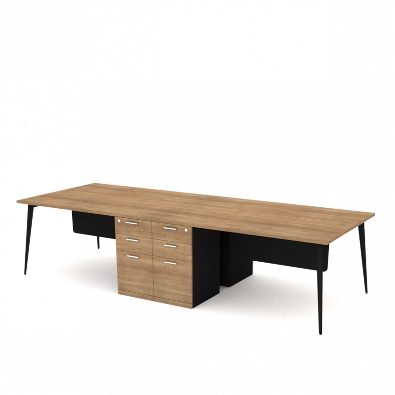 โต๊ะทำงานไม้โล่ง 4 ที่นั่ง ขาปลายเรียว ลิ้นชักถึงพื้น