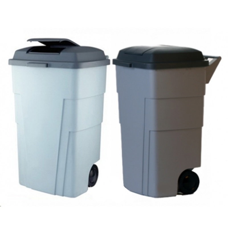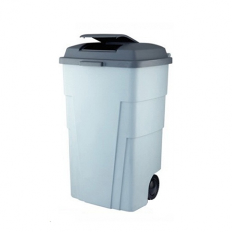 ถังขยะมีล้อฝาเปิดบน มีช่องทิ้ง สามารถเลื่อนหรือเข็นได้ ทำให้สะดวกในการเคลื่อนย้าย