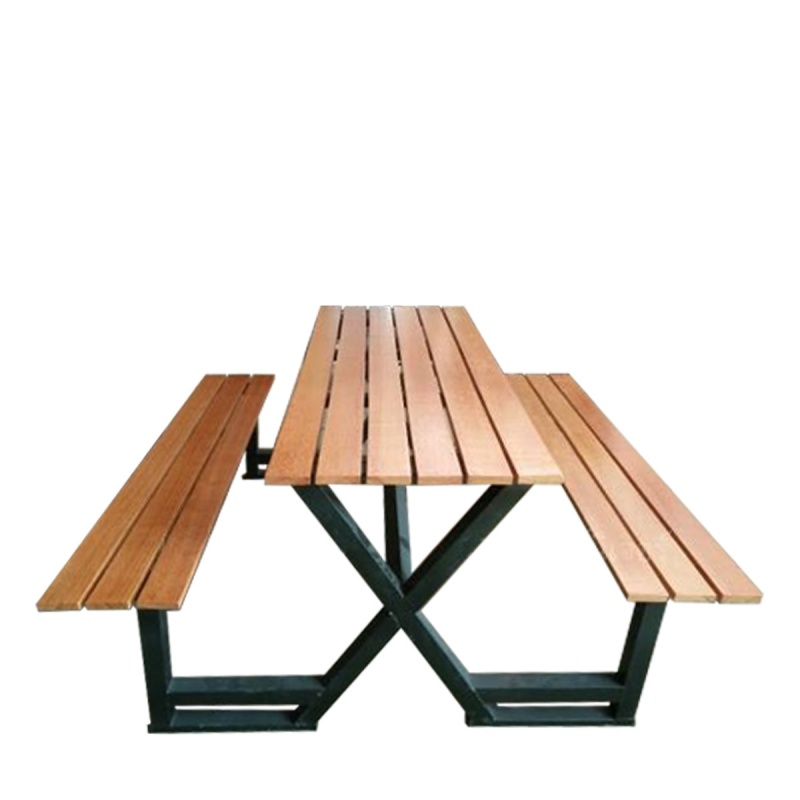 ชุดโต๊ะโรงอาหารไม้เต็งขาไขว้ X
