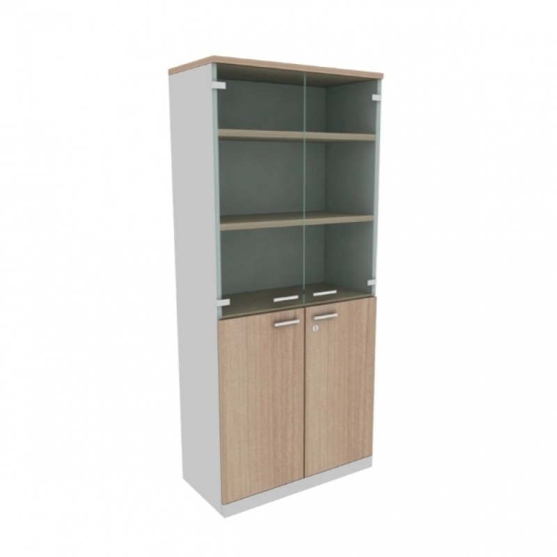 ตู้เอกสารไม้ บนบานเปิดกระจก 3 ชั้น ล่างบานเปิดทึบ 2 ชั้น