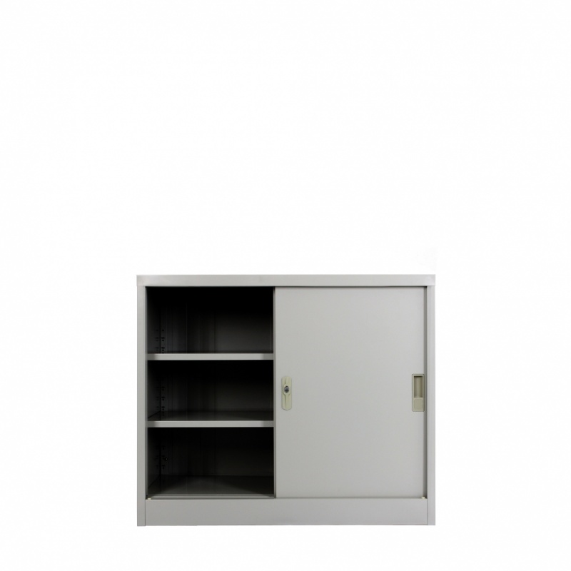 ตู้บานเลื่อนทึบพร้อมกุญแจล๊อค แผ่นชั้นระดับปรับสูง-ต่ำได้