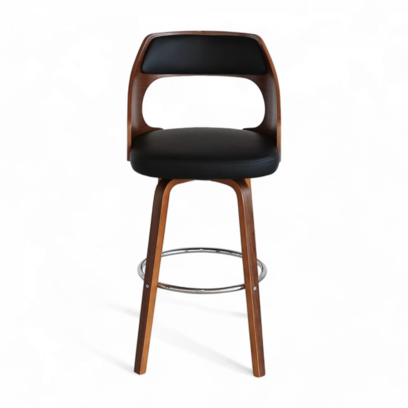 วัสดุ : โครงขาไม้ปิดผิววีเนียร์+เหล็กชุปโครเมี่ยม เบาะหุ้มหนัง PVC