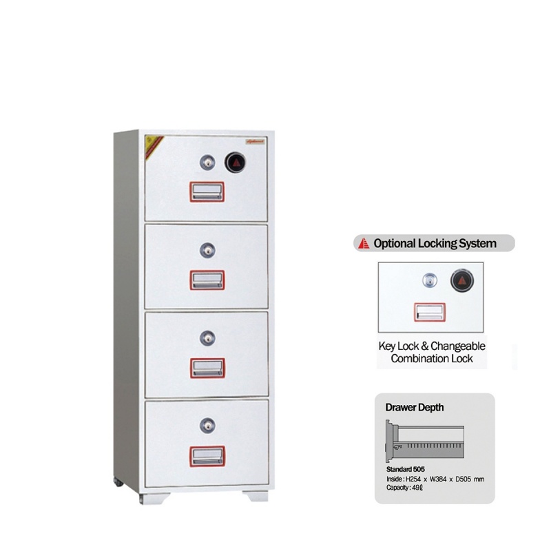 Safe from both theft and fire The cabinet is designed with depth to store a large amount of documents