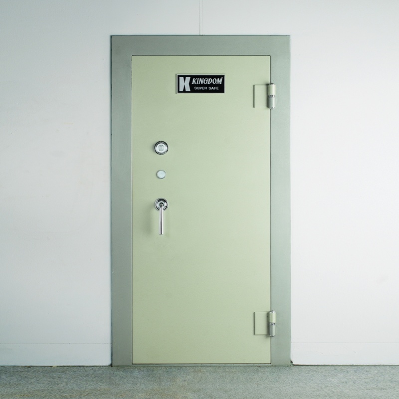 ใช้รหัสชนิดหมุน พร้อมกุญแจล็อคเสริมความปลอดภัยสำหรับฝังอยู่กับผนังคอนกรีต เพื่อสร้างเป็นห้องนิรภัย (ห้องมั่นคง) สำหรับเก็บทรัพย์สินมีค่าปริมาณมาก