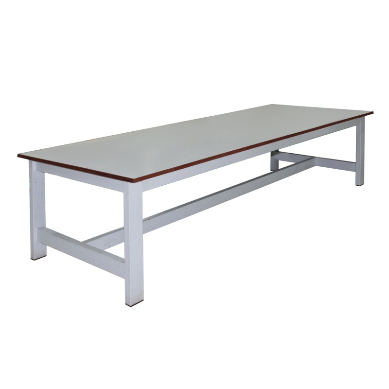 โต๊ะโรงอาหารโฟเมก้าขาวไม้อัดตีโครงหนา 25 มม.ปิดขอบคิ้วด้วยไม้สัก