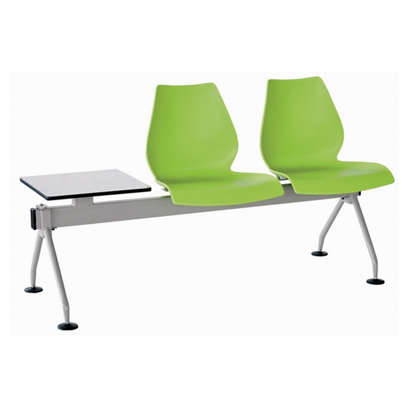 เก้าอี้แถวพักคอย ที่นั่งโพลี ขนาด 2 ที่นั่ง พร้อมโต๊ะวางของด้านข้าง